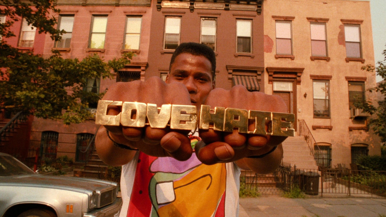 And yet when all is said and done, Do the Right Thing is not a comedy. It is the tension between its dualities of drama and humour, fire and water, and right and wrong where Lee’s central thesis emerges, and which is most accurately captured in Radio Raheem’s “right hand/left hand” monologue. His speech isn’t the first direct address to camera we have seen in this film, but here Lee demolishes the barrier between passive spectator and participant in swinging his camera round from a third-person to Mookie’s first-person perspective, then takes the time to let Raheem deliver his allegory of the battle between love and hate, where love ultimately wins out. If each of the characters in Do the Right Thing are grounded in some sort of fictional archetype, then Raheem is a vessel of innocence who believes that such clean dichotomies can be upheld with a clear victory of good over evil.