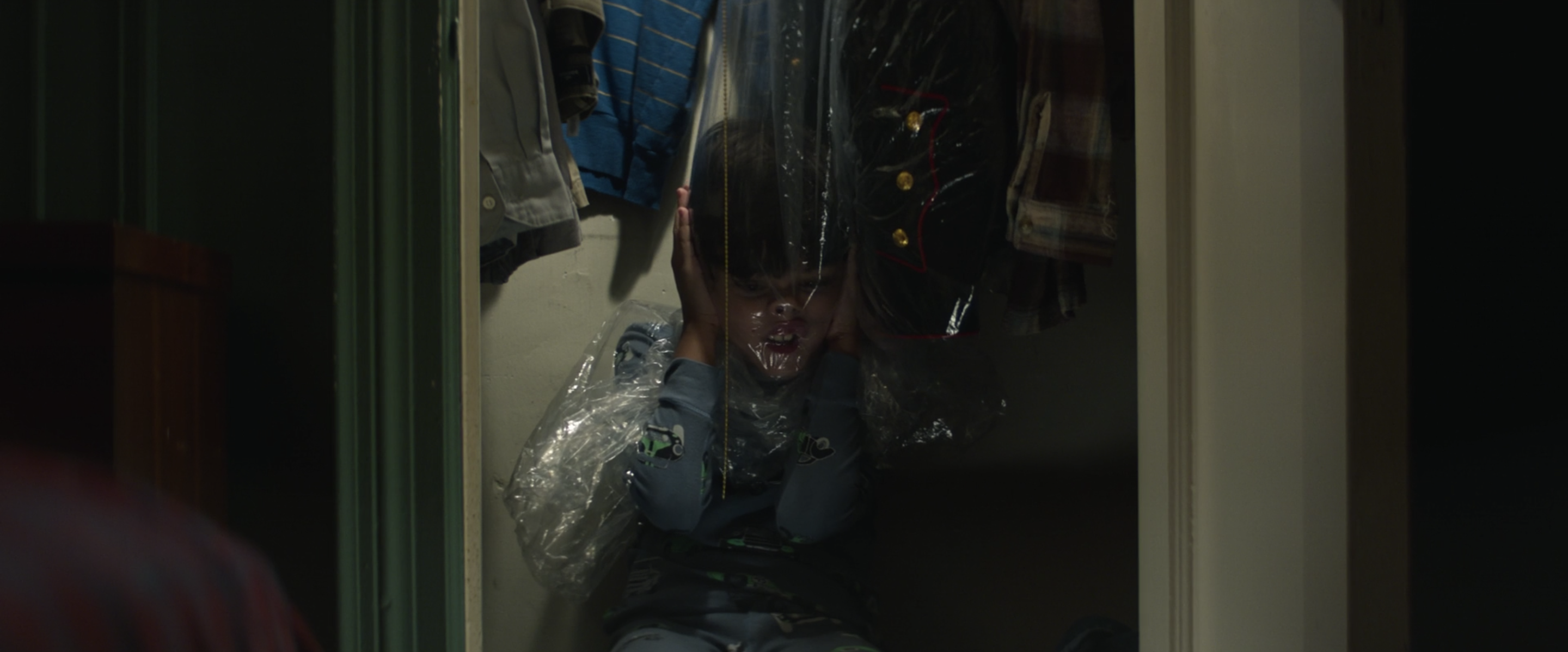 Saving young victims of trafficking is only one path out of his mental prison though. The other is far blunter, and much easier. Just as Joe is plagued by visions of Nina, one specific girl he has been tasked with rescuing, so too does he indulge in fantasies of his own suicide, imagining the sort of release that would come with letting it all go. Equally as immediate as his own prospective futures is his tragic past, punctuating the narrative in bursts of flashbacks that reveal glimpses of an abusive childhood he continues to re-enact in the present, wrapping himself up and suffocating in plastic just as his father used to do to him, all the while Ramsay reveals the direct parallels between these timelines in graphic match cuts.
