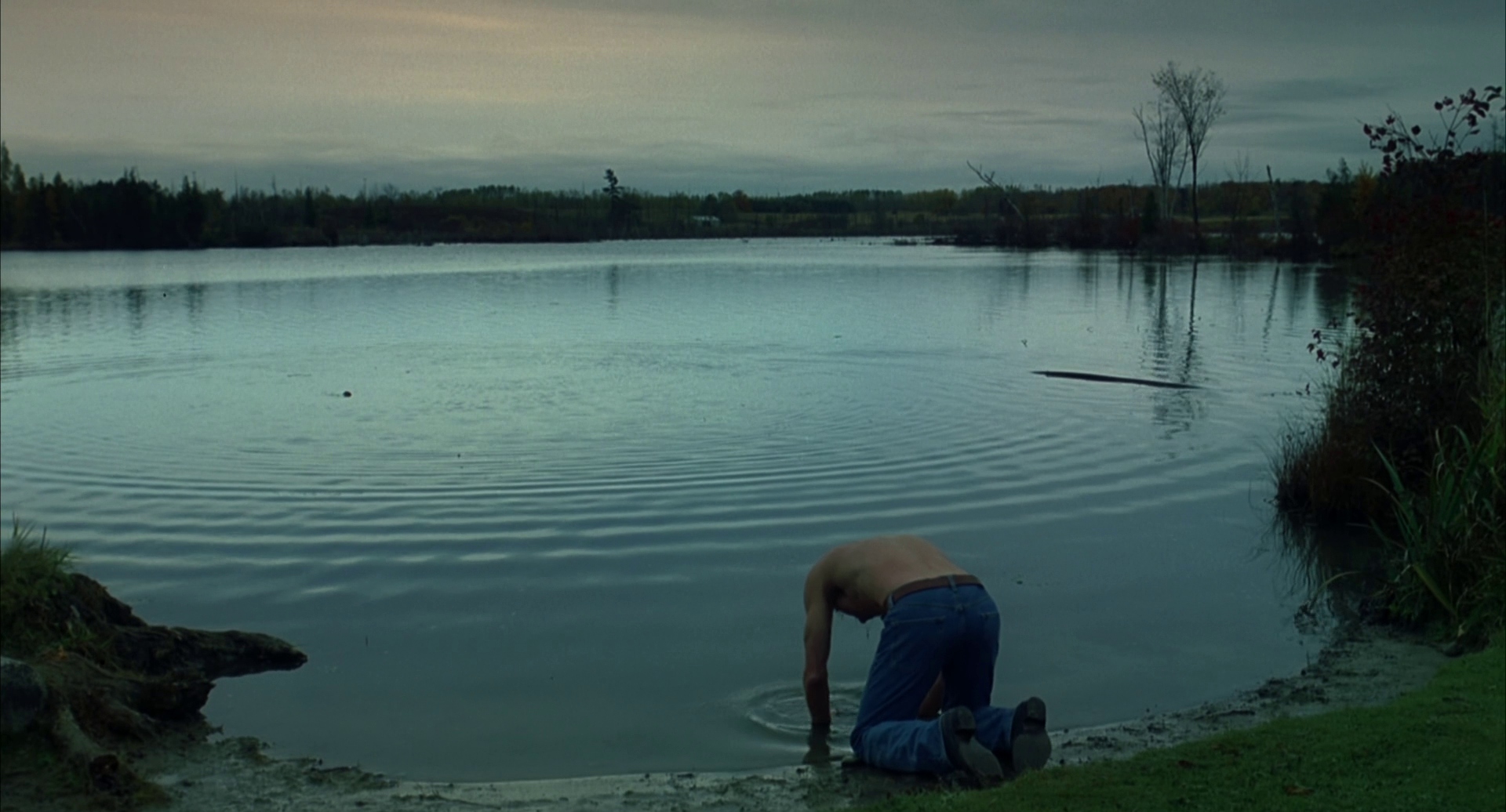 Through this approach to allegorical storytelling, Cronenberg imbues his fascination with carnal flesh with spiritual significance. Joey describes his transformation into Tom as a process which took several years of his life, like Christ’s own self-exile into the desert. Later when he must make that change again, he kneels in front of a lake and washes himself in the water, as if performing a ritualistic baptism that will see him reborn again as meek, mild-mannered Tom.