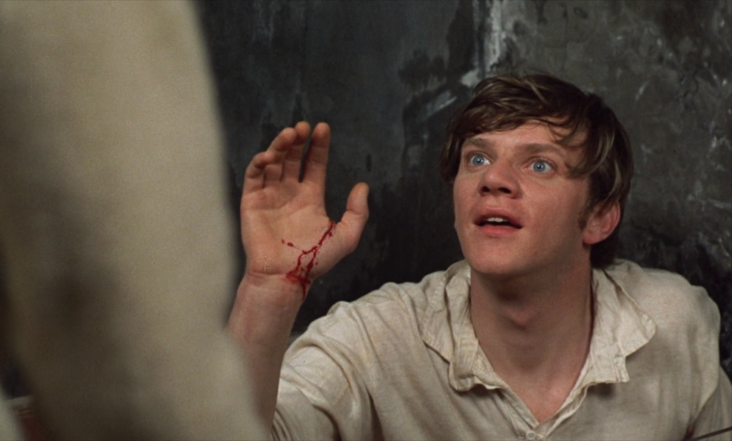 There is good cause to believe that such surreal scenes as the naked stroll of the housemaster’s wife through the dormitories are purposefully shot in black-and-white to mark a divergence from reality, though the lack of consistency here creates a more disorientating uncertainty than anything else. When ordinary church scenes are rendered in monochrome and the hilariously unexpected rise of the school chaplain from an office drawer appears in full colour, any theorising about the device’s formal meaning beyond its prominent bewildering effect is undermined, leaving it as a strange, unexplained anomaly like so much else we witness here.