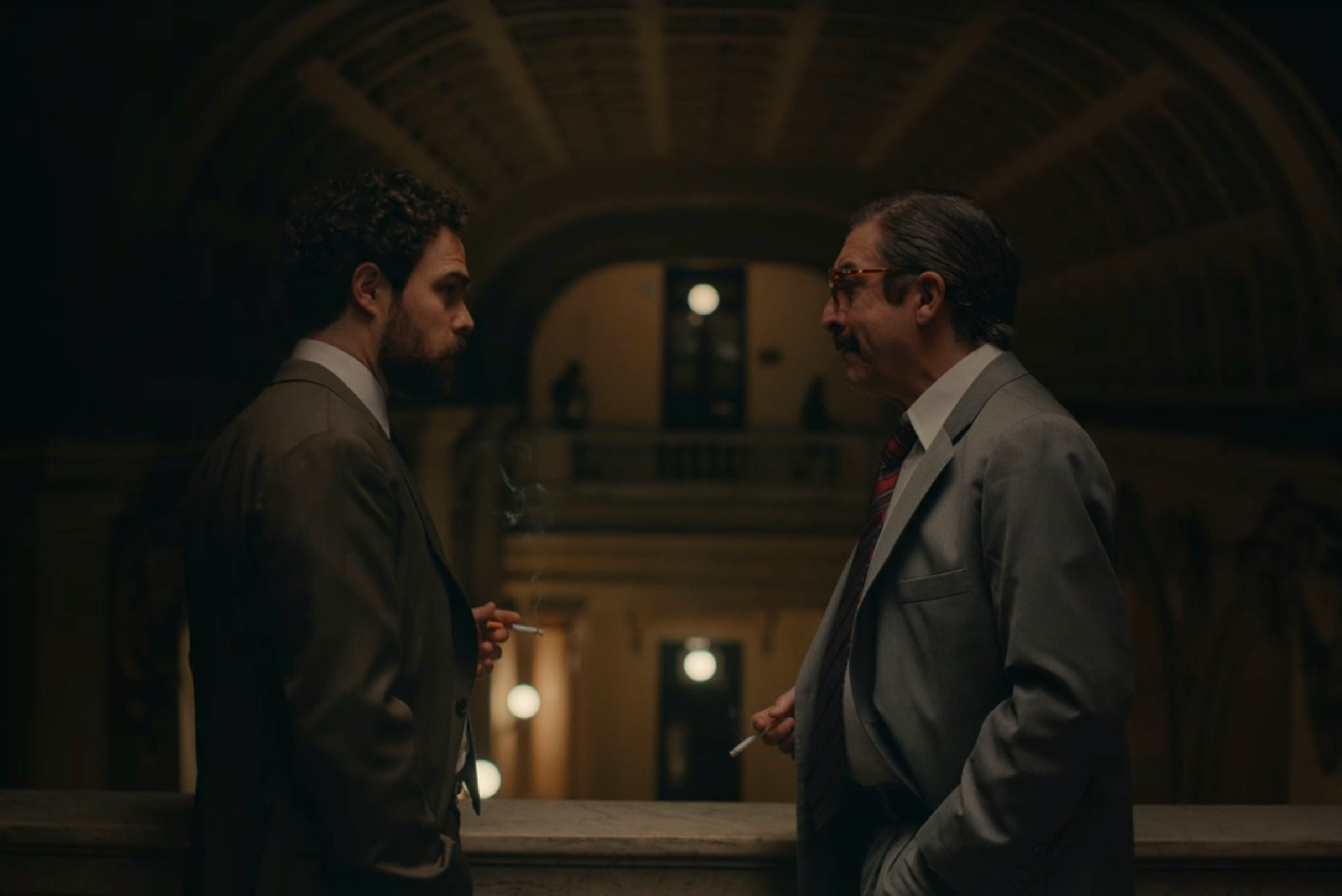 On the first day of what would become known as the Trial of the Juntas, a bomb threat is called in which Strassera promptly dismisses as an attempt to postpone the tribunal. Nevertheless, his deputy prosecutor, Luis Ocampo, remains on edge. A briefcase that a spectator in the gallery suspiciously leaves behind catches his eye, and as formal proceedings continue in the background, Mitre’s camera suspensefully lingers on this tiny, potentially dangerous disruption. Eventually this tension is dispelled with a bang on a table sounding uneasily like a bomb, though our relief can only last so long before paranoia starts trickling back in. Argentina, 1985 never quite releases us from its anxiety-inducing grip until its end, leaving a lot of room to wade through the harrowing testimonies of those who suffered under the dictatorial National Reorganization Process.
