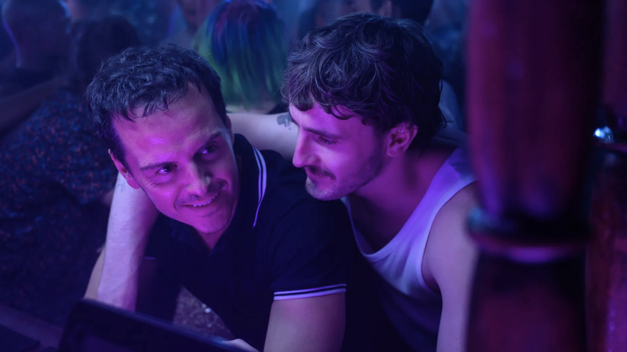Therein lies the second narrative thread of All of Us Strangers, completing this four-hander with Adam’s far more outgoing neighbour, Harry. His drunken, flirtatious visit one night to Adam’s apartment is greeted with shy reservation and gentle rejection, though our protagonist’s interest is officially piqued and a relationship soon begins. Andrew Scott and Paul Mescal’s chemistry is beautifully realised in their complementary performances, basking in the simmering excitement of new love. When they aren’t out partying in London’s nightclubs, they lay in each other’s arms back home, discussing their shared experiences of growing up homosexual in the 1980s and the amusing semantic difference between being “queer” and “gay.”