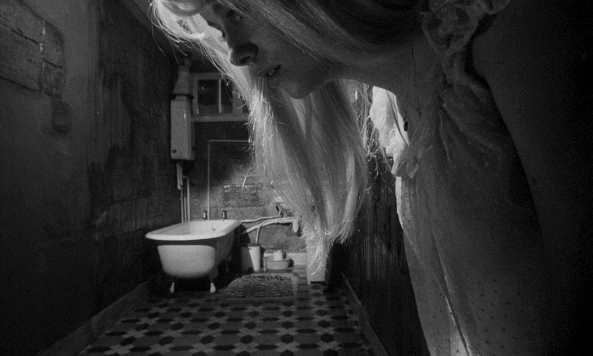 Coming off her grand success leading Jacques Demy’s Technicolor musical The Umbrellas of Cherbourg, Catherine Deneuve becomes the vessel through which Polanski examines an unstable, assaulted femininity in Repulsion, immediately proving her considerable range in the shocking contrast between both roles. Carol’s aloofness towards aspiring suitors in public hides the disgust that comes out more openly at home, specifically towards the boyfriend of her older sister, Helen. Even his habit of leaving his toothbrush in the same cup as hers invokes uneasy frustration, its placement taking on psychosexual significance as a figurative penetration, and the smell of his dirty clothes is enough to make her throw up. When she is left home alone for weeks without the company of another woman though, her obsessive paranoia expands uncontrollably in manic directions.