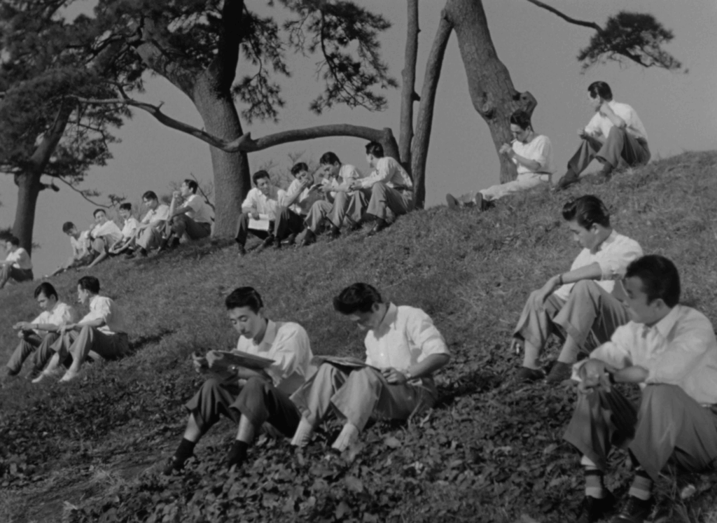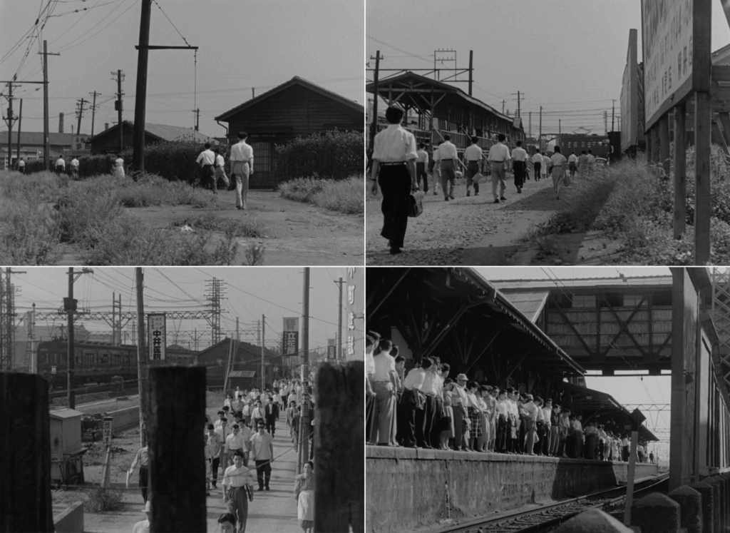 Crowd numbers mount in Ozu’s pillow shots as bureaucrats routinely trudge towards the station, gradually revealing the breadth of Tokyo’s business population.