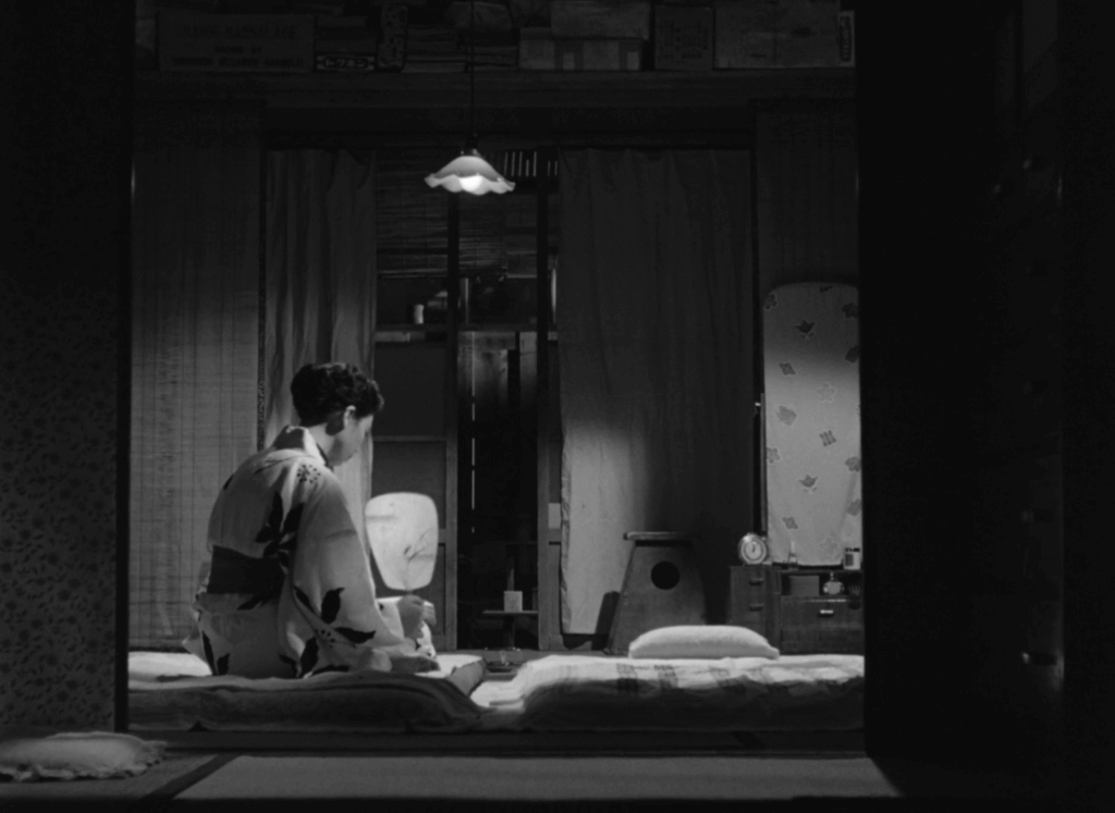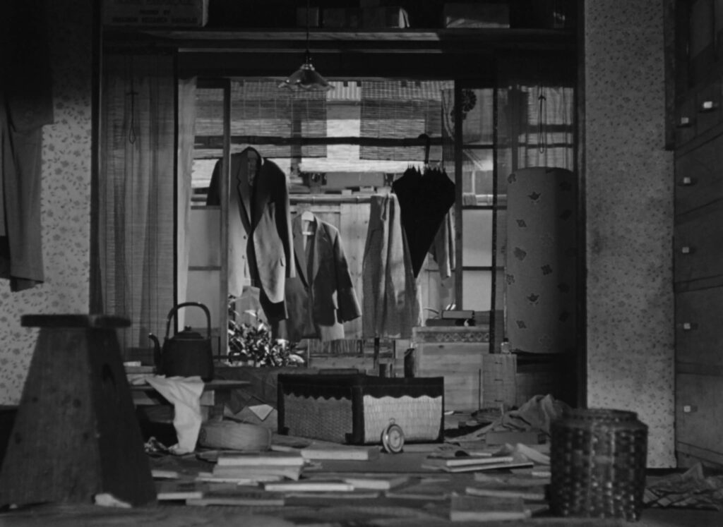 Ozu perfected the art of reflecting character through his mise-en-scène, here capturing a house in disarray as Shōji faces a future without his wife.