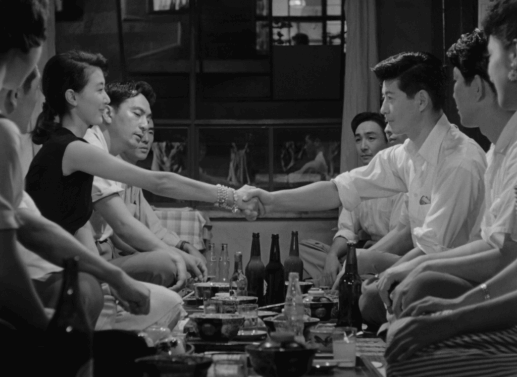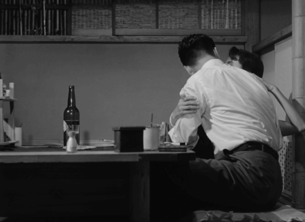 Only when the company’s talk of temporarily relocating Shōji becomes a tangible reality does he begin to understand the mundane privilege he has taken for granted, and how fragile it really is. Surely he is only moving to end their affair, Goldfish bitterly assumes, before ultimately deciding to attend his farewell party and part on tearful, amicable terms. Ozu handsomely arranges sake bottles through the shot here as the team sings ‘Auld Lang Syne’, though as Shōji packs up his belongings at home, his mess of papers and books underscore an even deeper disarray. Masako does not intend to leave with him, we learn – this is to be a completely blank slate for our uprooted salaryman.
