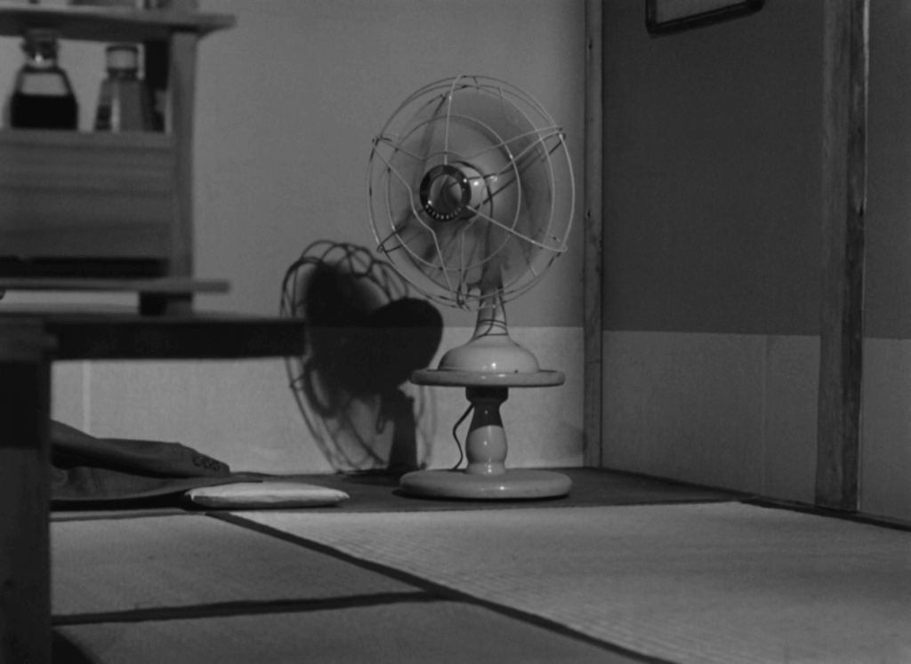 The hum of modern life whirs beneath Shōji and Goldfish’s first kiss, and Ozu cuts to this electric fan like punctuative reminder.