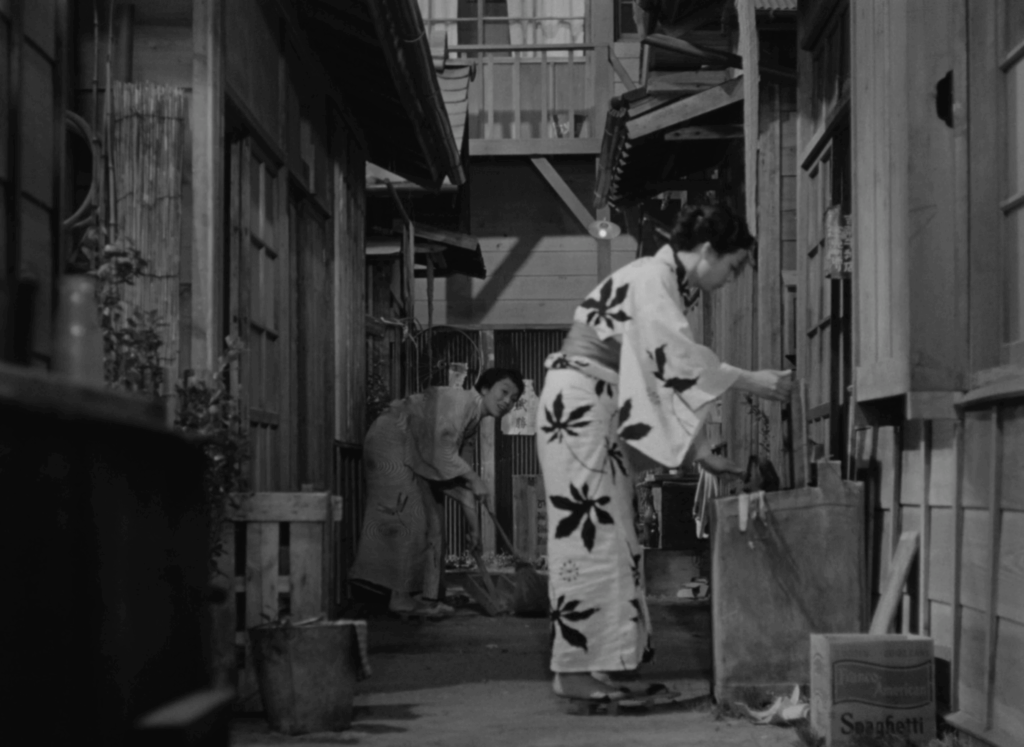 Even amid such aching melodrama, Ozu’s direction is subdued, underscoring Shōji and Masako’s estrangement by patiently intercutting across their disconnected lives. While Shōji is out, distracting himself from the morose atmosphere back home, Masako is thoroughly absorbed in it. Wide shots frame her small figure through doorways, turned away from the camera, and even that recurring alleyway outside the house begins to appear far darker and colder than usual. When she finally confronts him, Ozu alternates between isolating mid-shots, deliberately placing us right in the middle as each directs their gaze toward the camera. With the rift remaining unhealed, we leave them in separate rooms, yet still he maintains these parallel editing rhythms as they silently ruminate on guilt, heartbreak, and disillusionment.