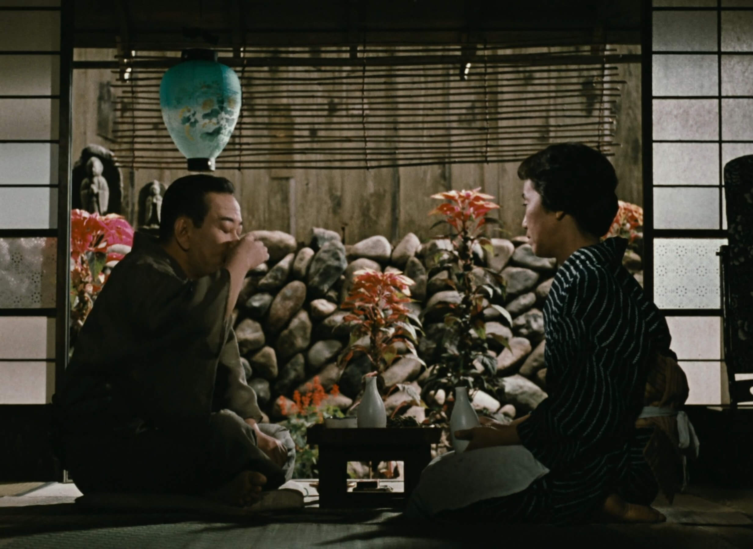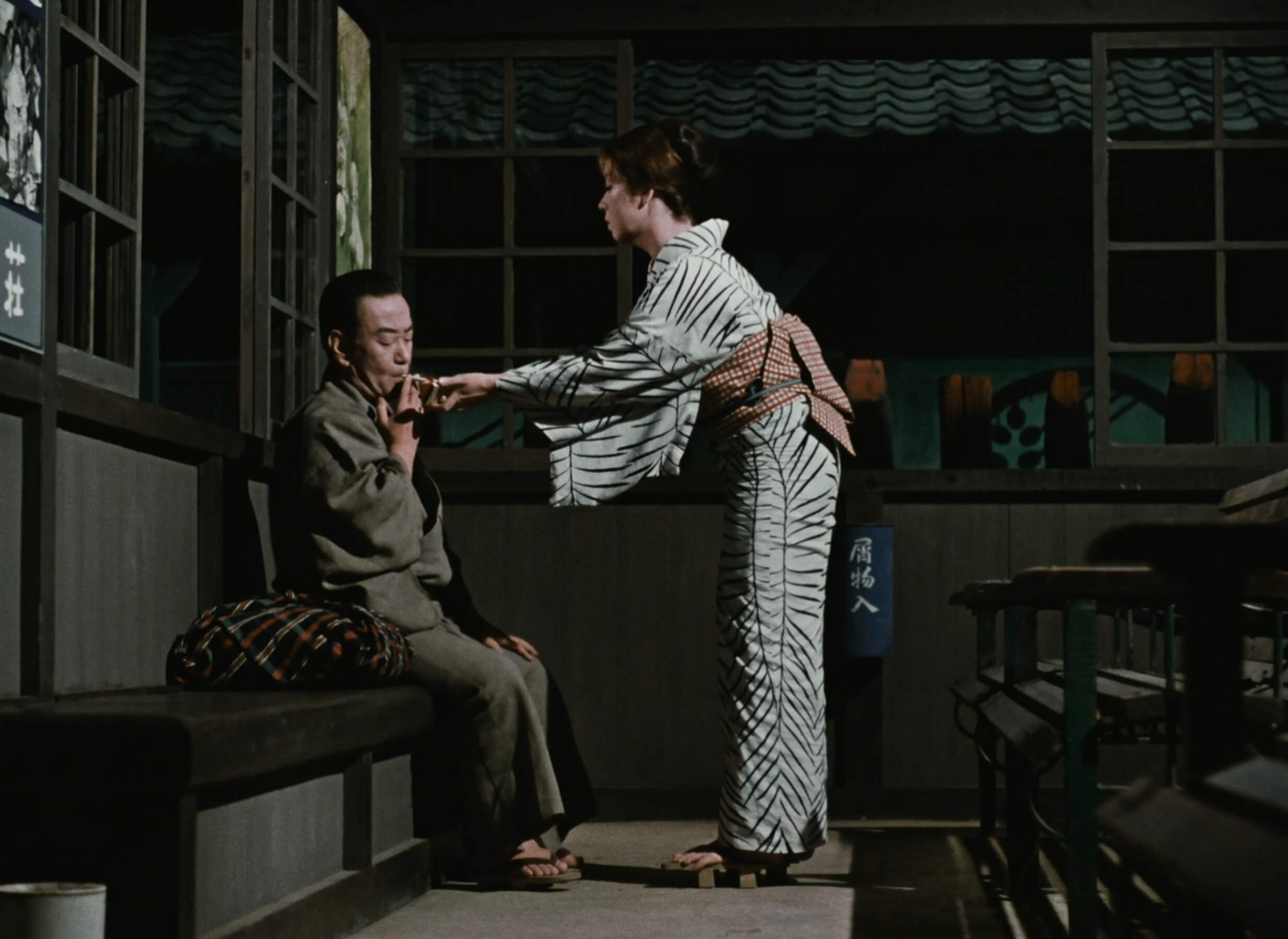 Night envelops the station where Komajuro waits for his ride out of town, and where he ultimately makes unlikely amends with Sumiko. “Shall we give it one more try?” he tentatively proposes. “Yes, we’ll work it out,” she responds, before pouring him a shot of sake. As the train pulls away into the darkness and its rear lights recede from view, Ozu extends his visual symbolism to the very final shot, joining these weathered souls in dignified surrender to the unrelenting passage of time. Their reconciliation may be modest, but in Ozu’s ephemeral, luminous world, even floating weeds find tender moments of grace.