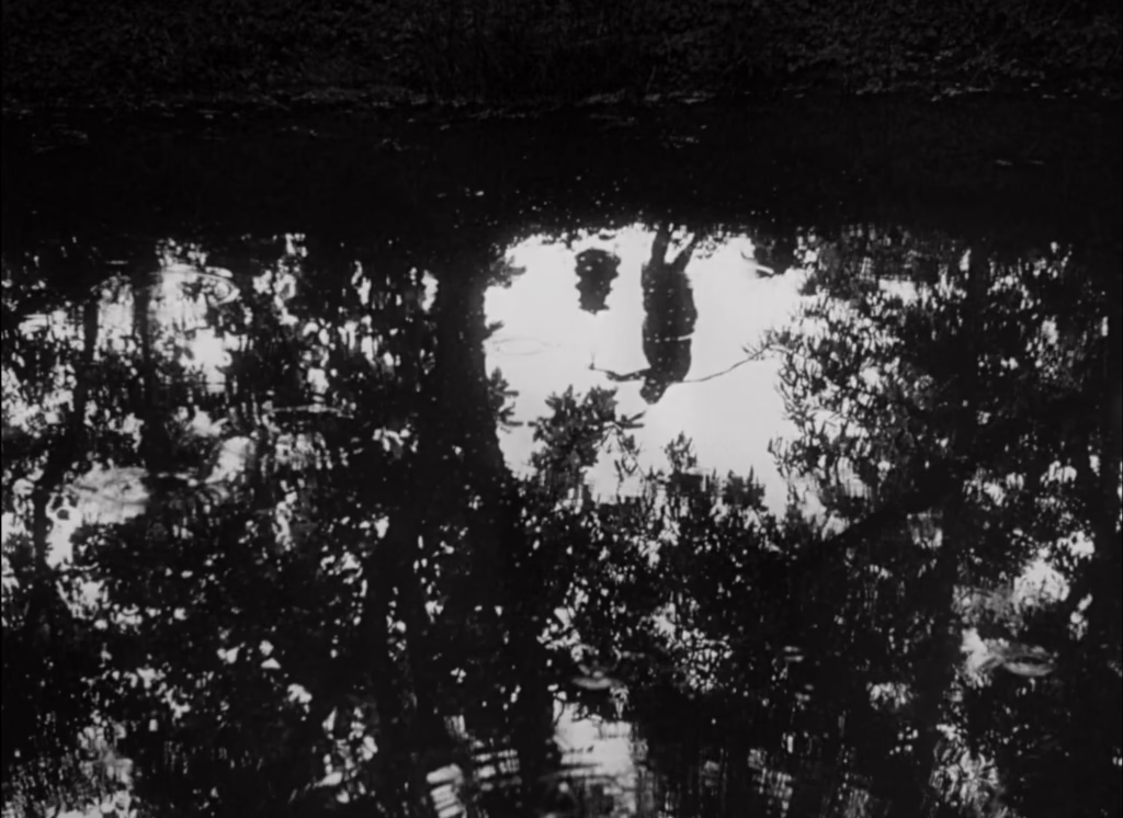Water is a key motif in Pather Panchali, embodying both peace and destruction – though here it is clearly the former as we observe reflections pass by on the surface.