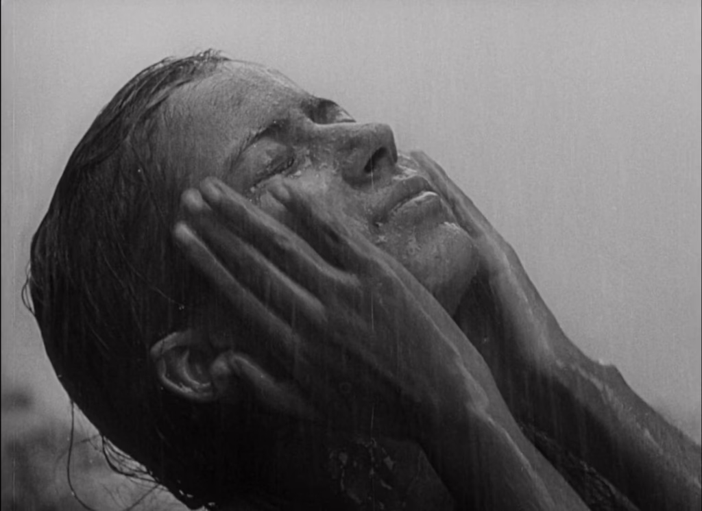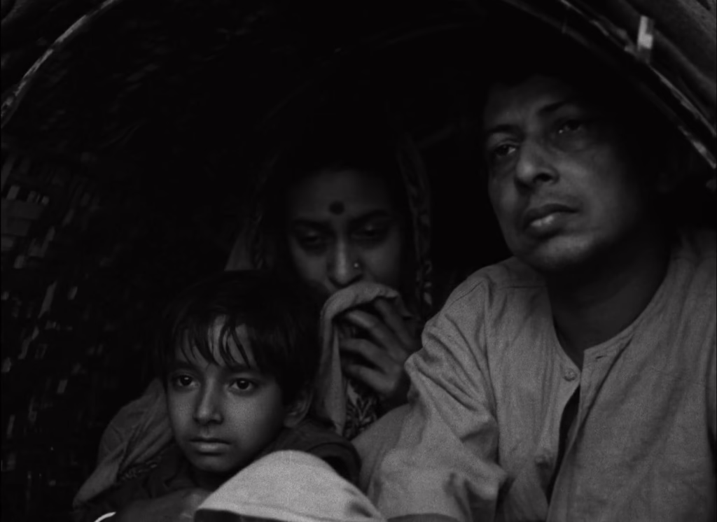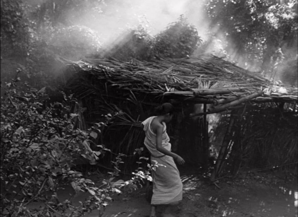 Death may be part of nature’s cycles, but that doesn’t make it any less of a disturbance to Apu’s childhood in Pather Panchali. Living in a rural Bengali village with his family and the elderly “Auntie” Indir, his days are spent wandering the forest, playing with his sister Durga, and watching live theatre whenever it rolls into town. It is as idyllic as a life in poverty can be, drifting by like a warm summer breeze that could only ever be interrupted by a cool, creeping change in the air. It is on one such day that Apu and Durga run through a waving field of white kash flowers to watch a train pass by, only to find Indir crouched in the forest, dying. Panicked, they run back into town to find some grownups, who carry her body away into the mist as a mournful, funereal hymn resonates in the background.