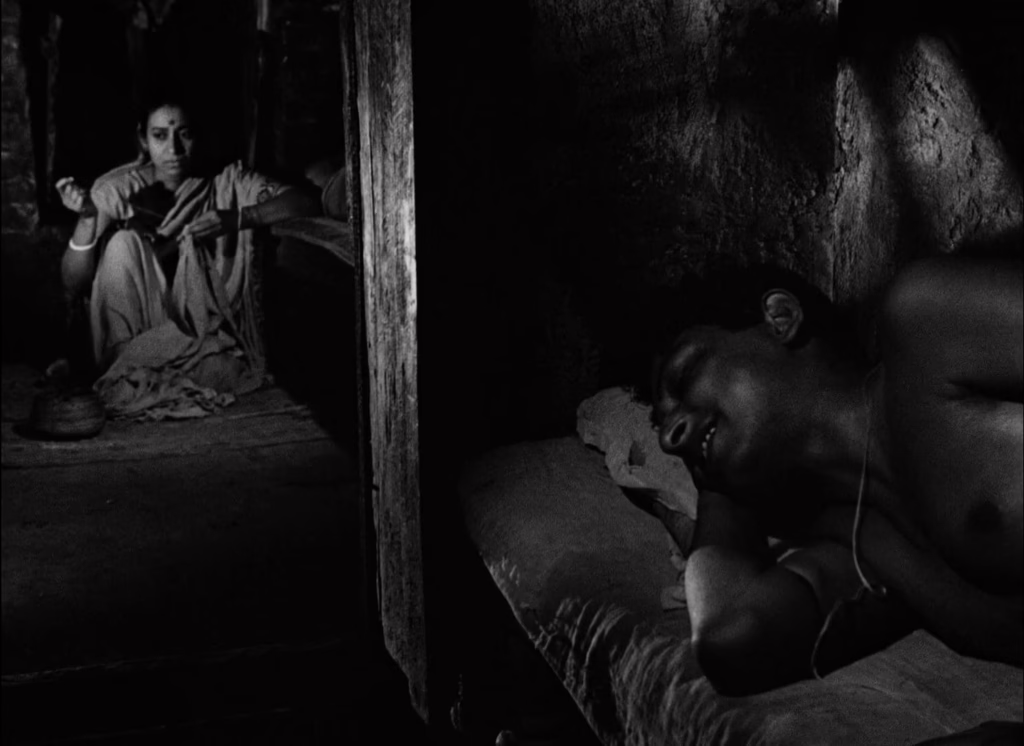 The Italian neorealist influence is evident in this small ensemble, contrasting the hardship of adults against the naivety of children, though Ray’s adoption of Vittorio de Sica’s cinematic ethos extends beyond theme alone. While Bollywood was flourishing in its 1950s Golden Age, dazzling audiences with extravagant romances and musical spectacle, Ray’s quiet corner of Indian cinema was exposing the authentic, unvarnished struggles of ordinary life through minimalist restraint and unembellished location shooting. The earthy, elemental textures of this village especially come alive through his observational lens, drawing out long takes that bask in the natural light, and framing scenes through tree branches and weathered archways.