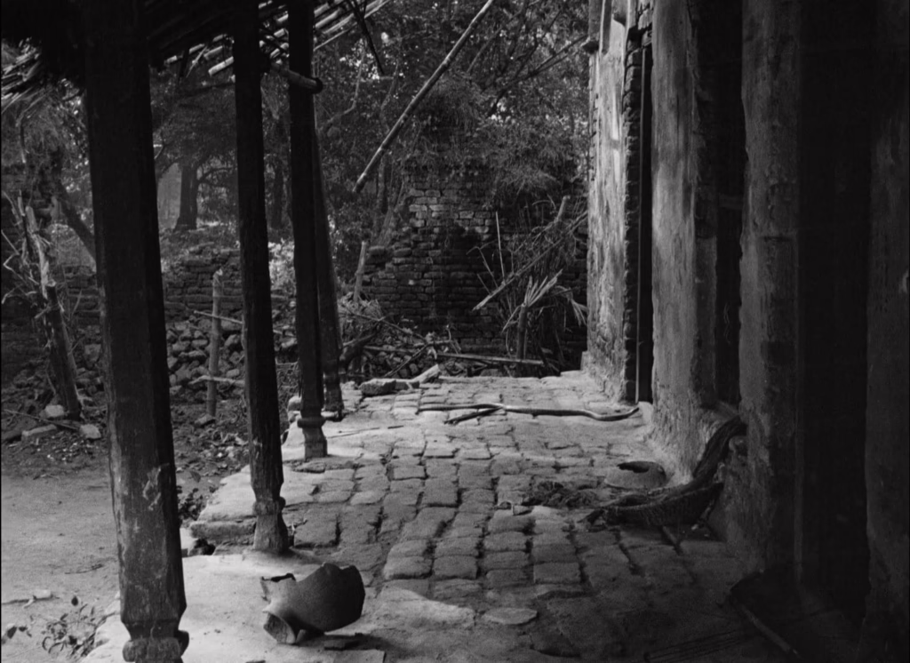 Apu’s story would continue to unfold through the rest of Ray’s neorealist trilogy over the coming years, though with his diminished family’s sombre departure, it is apparent that this will be the last time he ever lay eyes upon the village of his childhood. Still, even in the absence of humans, nature continues to stir, reclaiming their now-abandoned home as a snake winds its way through the rubble and slips quietly inside. Apu may grow, mourn, and leave the sunny days of his youth behind in Pather Panchali, yet the sacred cycles of Ray’s world persist, holding memories of innocence and sorrow within its sacred, primordial pulse.
