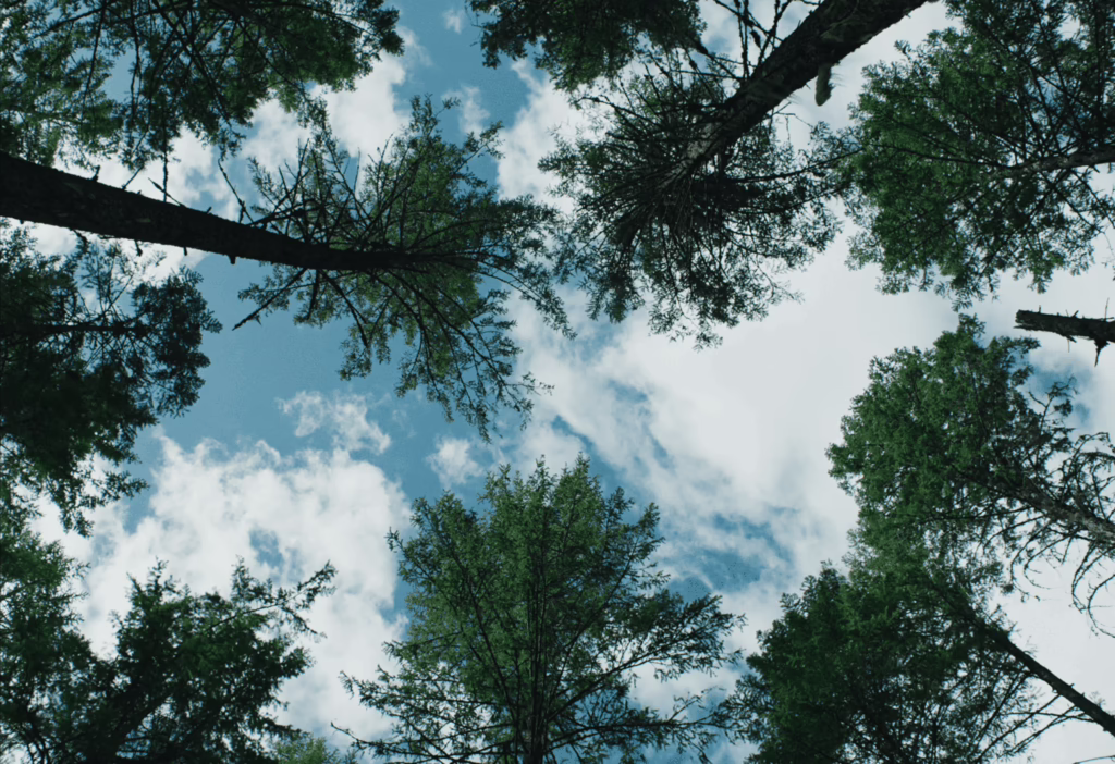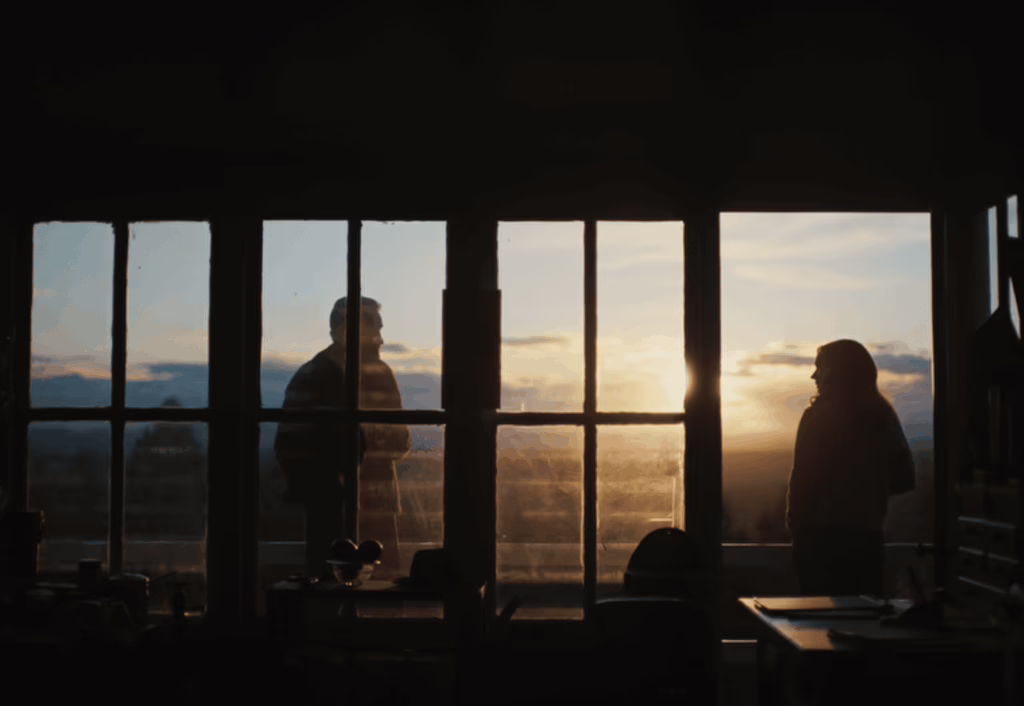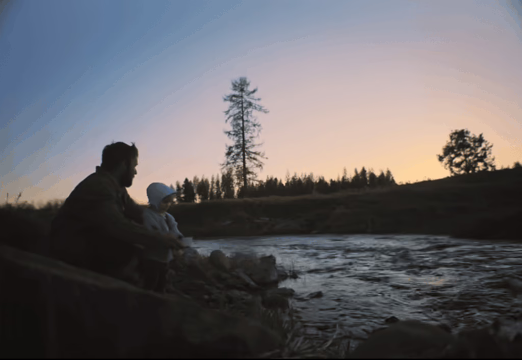 This existential hollowness has long lingered in Grainier’s consciousness too, we learn in the opening minutes, denying him any sense of purpose or passion for many years. Only when he meets his future wife Gladys does his future begin to take shape, and fully illuminate once they welcome their daughter Kate into the world. Bentley’s visual storytelling flourishes in the idyllic paradise of their humble countryside home, stripping dialogue to stretches of silence as they handcraft fish traps and picnic by the Moyie River. Wide-angle lenses breathe in the negative space of pink, blue, and orange skies, beautifully tinted by the setting sun’s natural light, which in turn highlights the textures of rippling water and billowing clouds. Even as seasonal work in faraway locations renders Grainier a lonely stranger in his own life, this sanctuary of love becomes the axis around which his existence turns, radiantly glowing with the false promise of permanence.