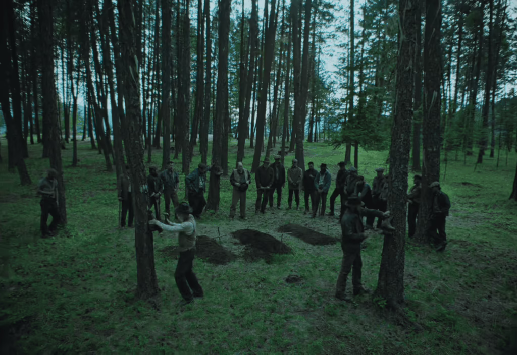 Ever since Robert Grainier unwittingly assisted in the lynching of a Chinese immigrant on a railroad construction project, he has anxiously felt the shadow of some dire, fateful punishment waiting to exact its toll. He did not know what was taking place when a small group of fellow workers picked up the man, carried him to a bridge, and hurled him over the edge, but the fleeting moment that he joined in has haunted him ever since. “What did he do?” he frantically repeats, grasping for some sense in this violence – though given Train Dreams’ setting in early 20th century Idaho, it isn’t hard to recognise the malicious prejudice driving this act.