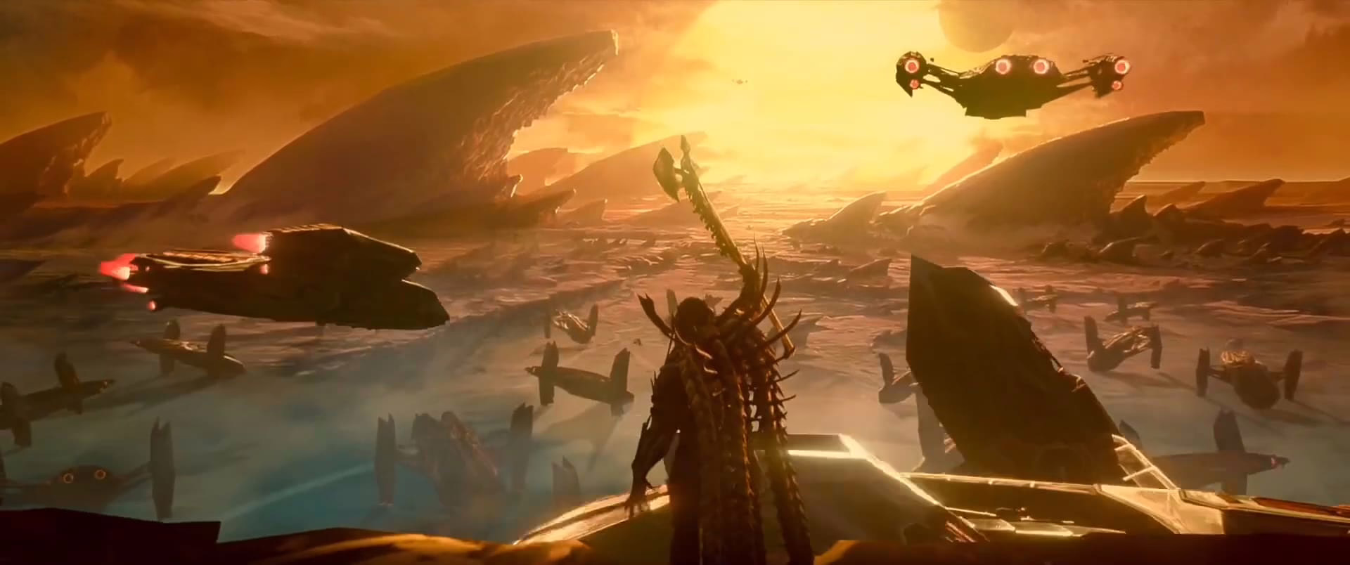 Viking warrior Ursa is the first in Killer of Killers to confront the alien hunter, helming an episode named after the razor-sharp shields she uses for both attack and defence. Like the two others who will soon face their own pursuers, she is in the thick of combat when it first lands, silently observing her intrepid onslaught and remarkable endurance. The animation is beautifully stylised as flaming arrows rain down against a deep blue sky, and a long take navigates a bloody, frozen battle at the gates of an enemy clan, though it is the parallel images of her kneeling over fallen loved ones that poignantly illustrate her deepest motivation.